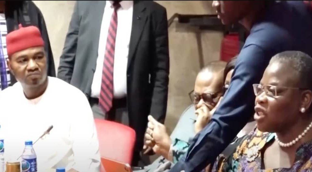 On Tuesday nor be small gbege wey nearly lead to red eye nai hapun for di committee wey dey look into di mata of Senator Natasha Akpoti-Uduaghan wey say Senate President, Godswill Akpabio eye dey her bodi, bifor you know shut up don dey fly for air between foma Minister Obi Ezekwesili and Senator Onyekachi Nwaebonyi.