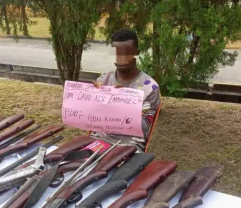 Police for Akwa-Ibom State don arrest one David Nse Emmanuel wey dey produce gun join with him papa, Akpan Nse and brothers but di others run.